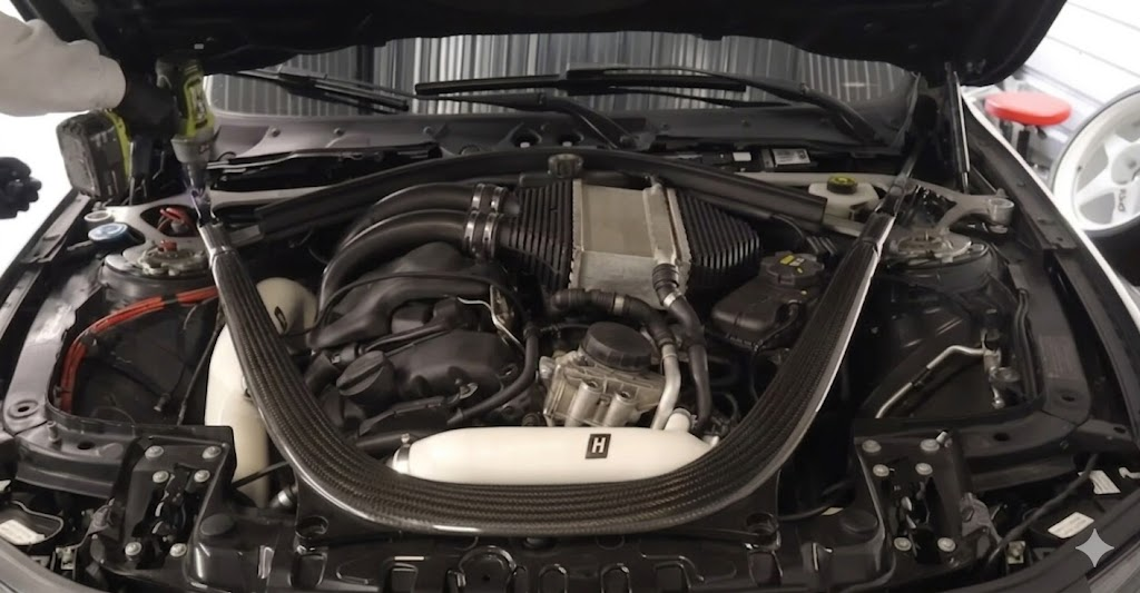- Reinstall the Carbon Fiber U-Brace: Put the iconic F80 M3 carbon fiber brace back into position. It is recommended to hand-tighten all bolts first to ensure alignment before torquing them down, avoiding stress damage to the expensive carbon structure.
