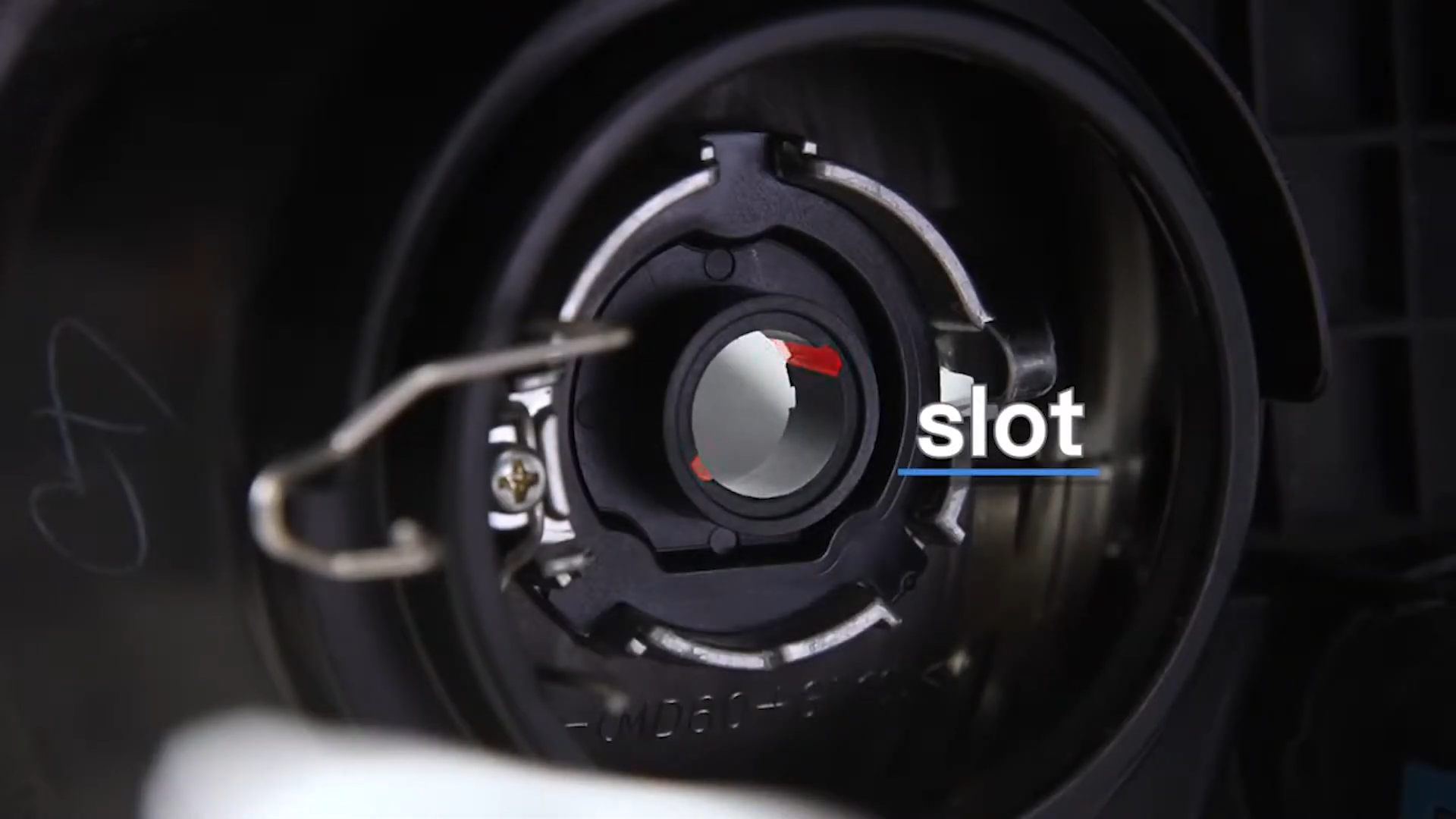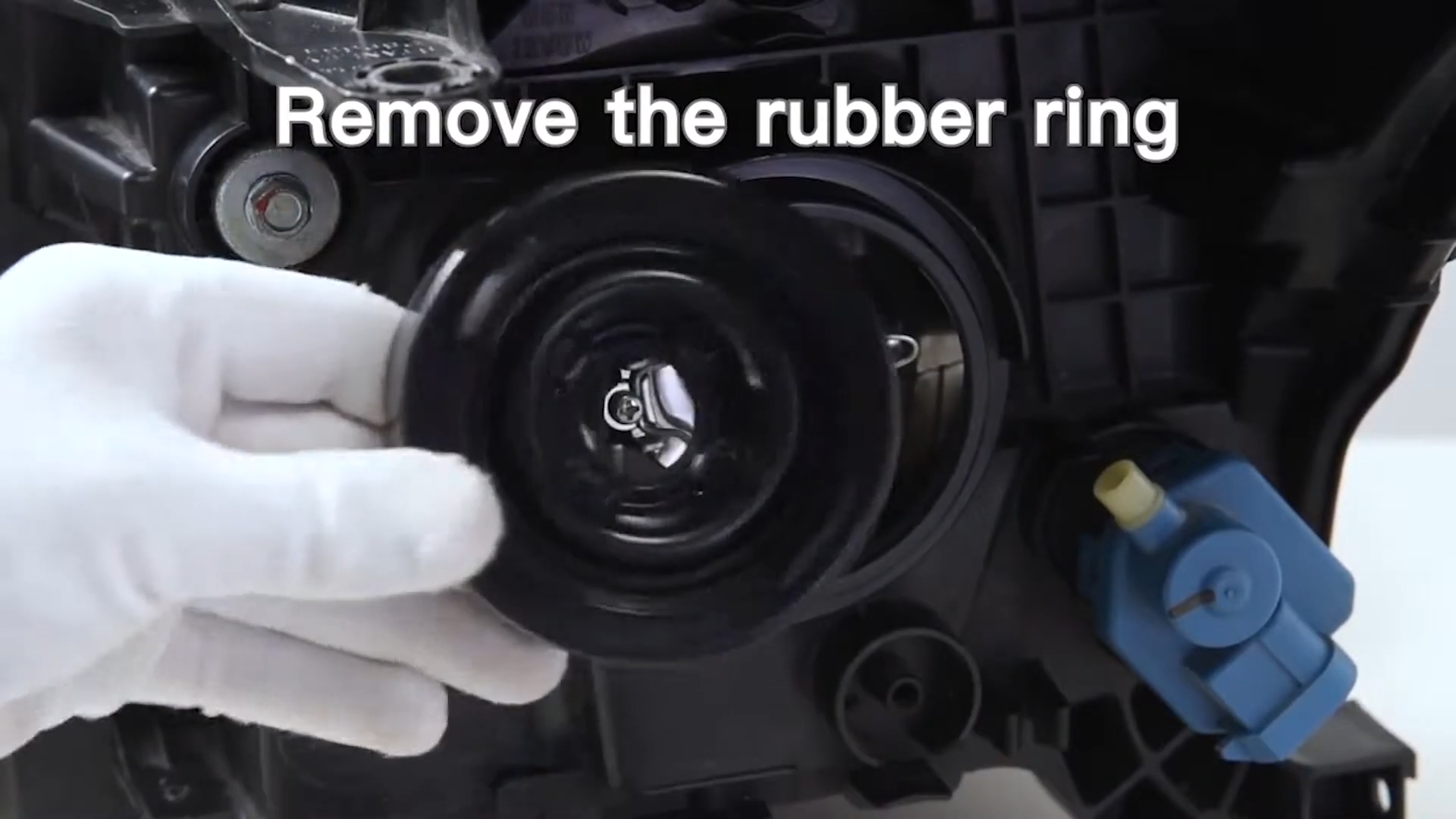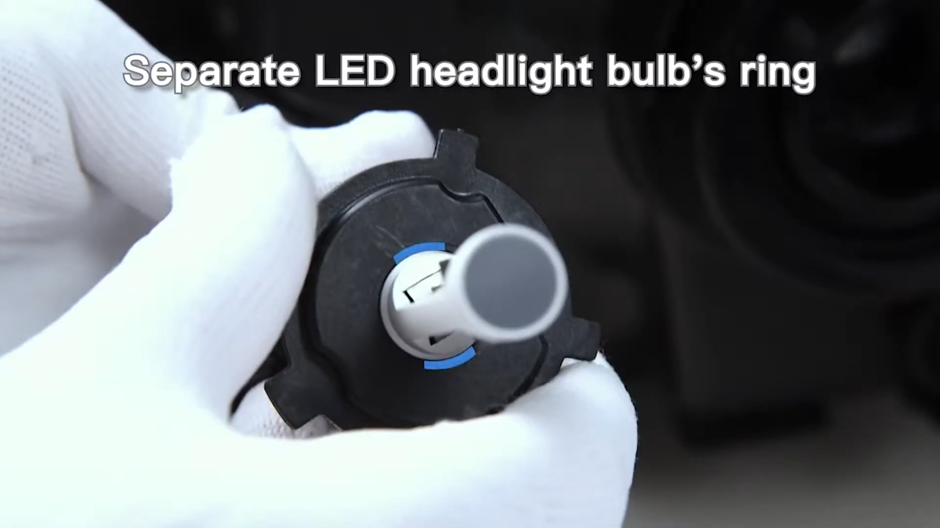 Seperate the ring of the LED 9003 headlight bulb and carefully insert the bulb into the slot of the headlight assembly. Be sure not to touch the glass part of the bulb with your bare hands.
