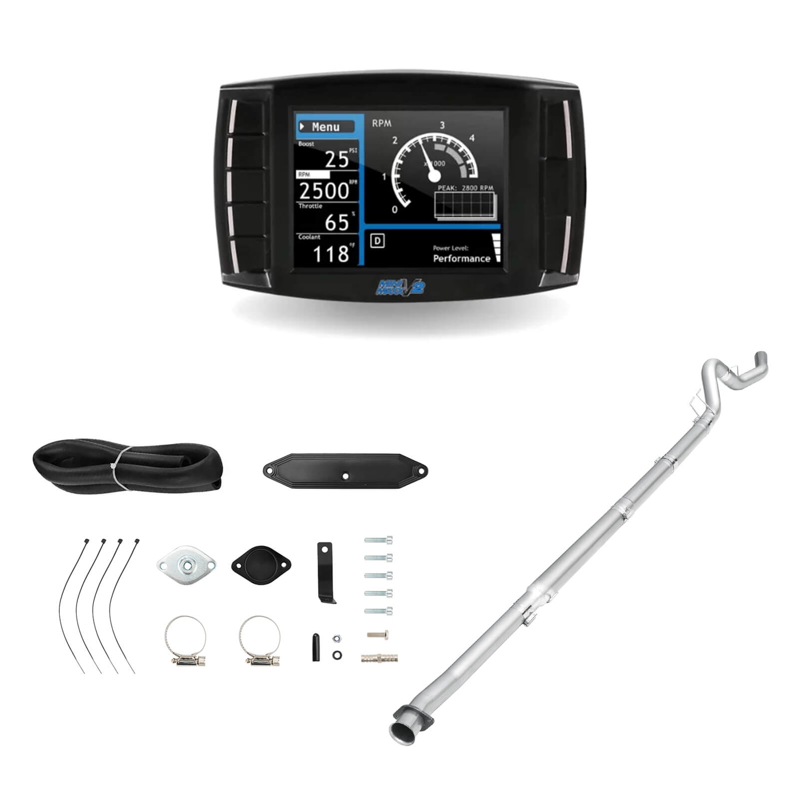 • Boosts Performance: Features a 5 Inch Downpipe-Back Pipe, EGR Delete Kit and Minimax V2 to optimize exhaust flow, cooling efficiency, and engine ventilation.