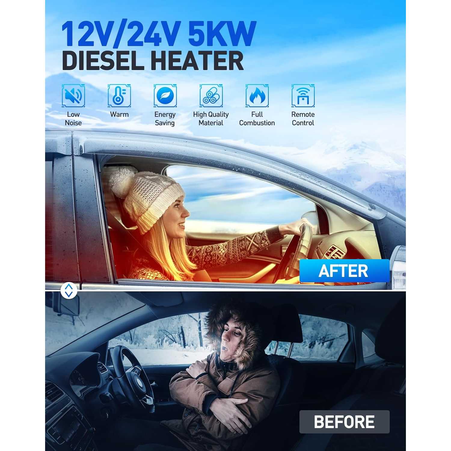 • ✨(5KW Diesel Heater)The diesel parking heater, equipped with a muffler, heats cold air as it passes through the combustion chambers within the heater and exhausts the waste gases. This diesel heater can rapidly raise the interior temperature within just 10 minutes, effectively preheating the vehicle and swiftly eliminating frost from the windows. Even in the freezing winter, you can start your journey quickly!