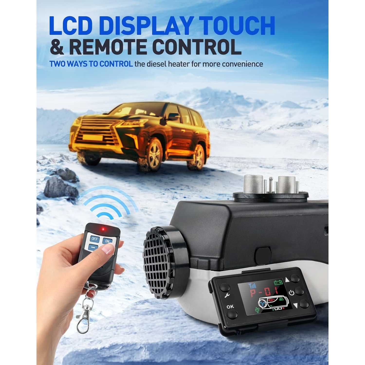 • ✨(LCD Switch & Remote Control)The air diesel parking heater comes with an LCD display screen and a long-range remote control with a range of 98 feet/30 meters. With the remote control, you can start the heater and warm up your vehicle in advance, adjust the temperature, airflow, and fuel quantity all from the comfort of your home. The LCD display screen also provides Fahrenheit temperature readings and offers the same functionality.
