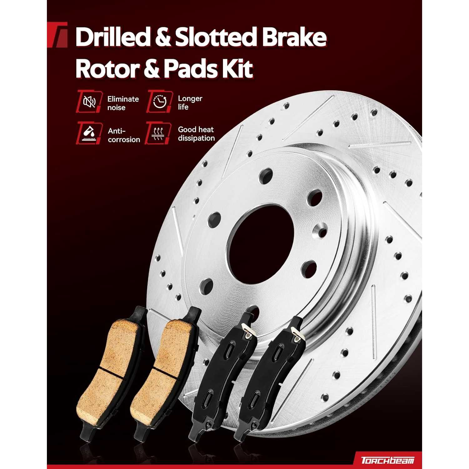 • (Less noise longer brake life): Brake pads tested to ensure noise-free braking. Rotors use G3000 castings and brake rotors are double disc smoothened and mill balanced to help prevent cracking and build up.