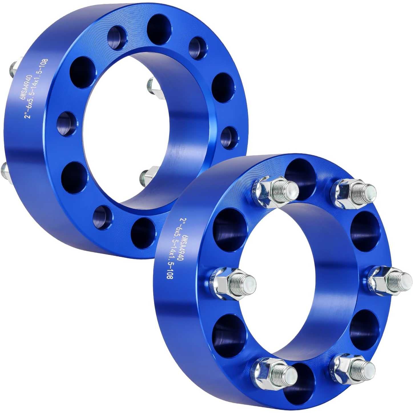• Specification: 2"Thickness, 6x5.5 Bolts Pattern, M14x1.5 Thread Studs, 108mm Center Bore.In order not to waste your time, Please use the year, make, and model in the 'Suncentautoconfirmedfit' filtering system in the upper left corner of the link to confirm compatibility.