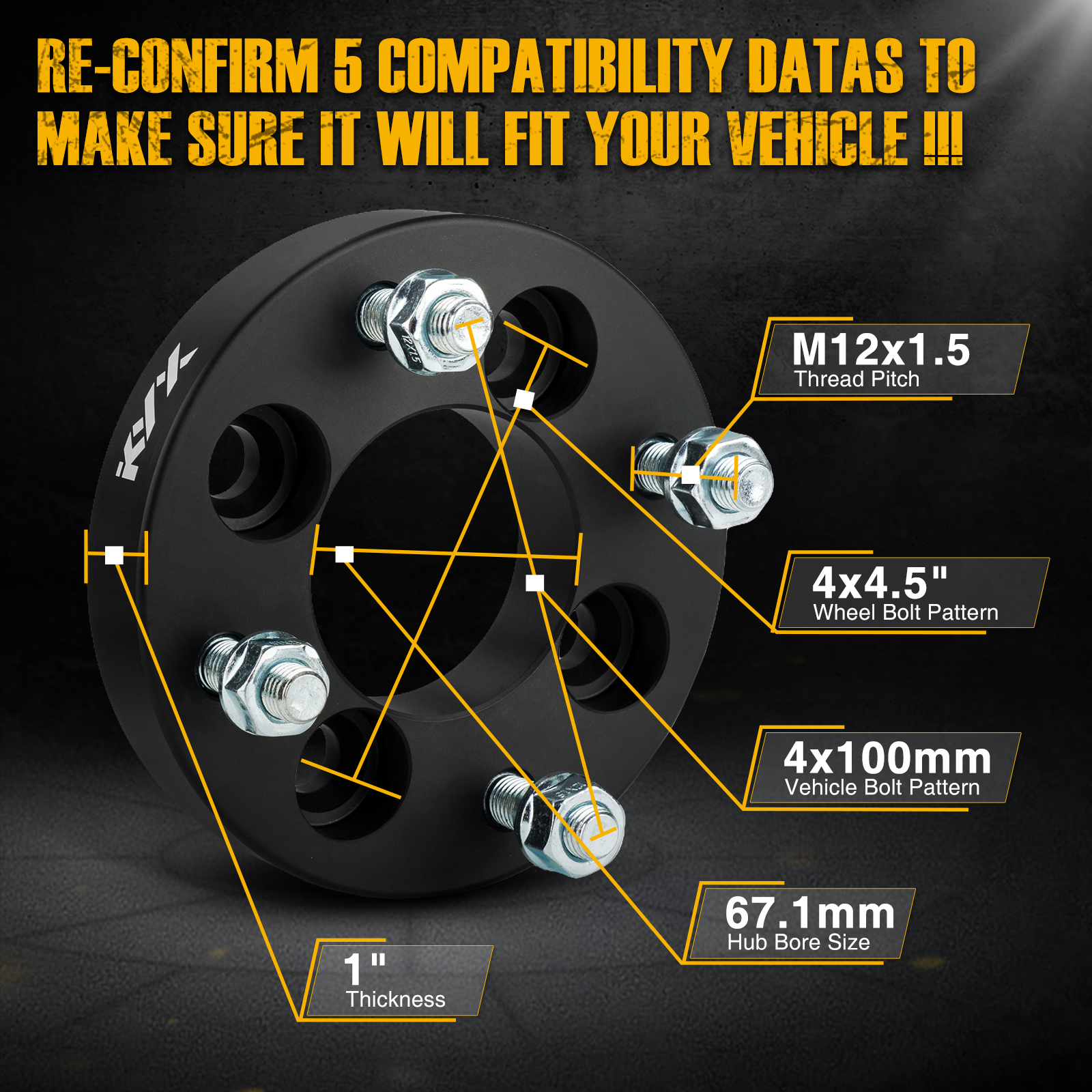 KAX® 1" 4x100mm to 4x4.5" Wheel Adapters 67.1mm M12X1.5 4PCS for 1991 Mazda Miata
