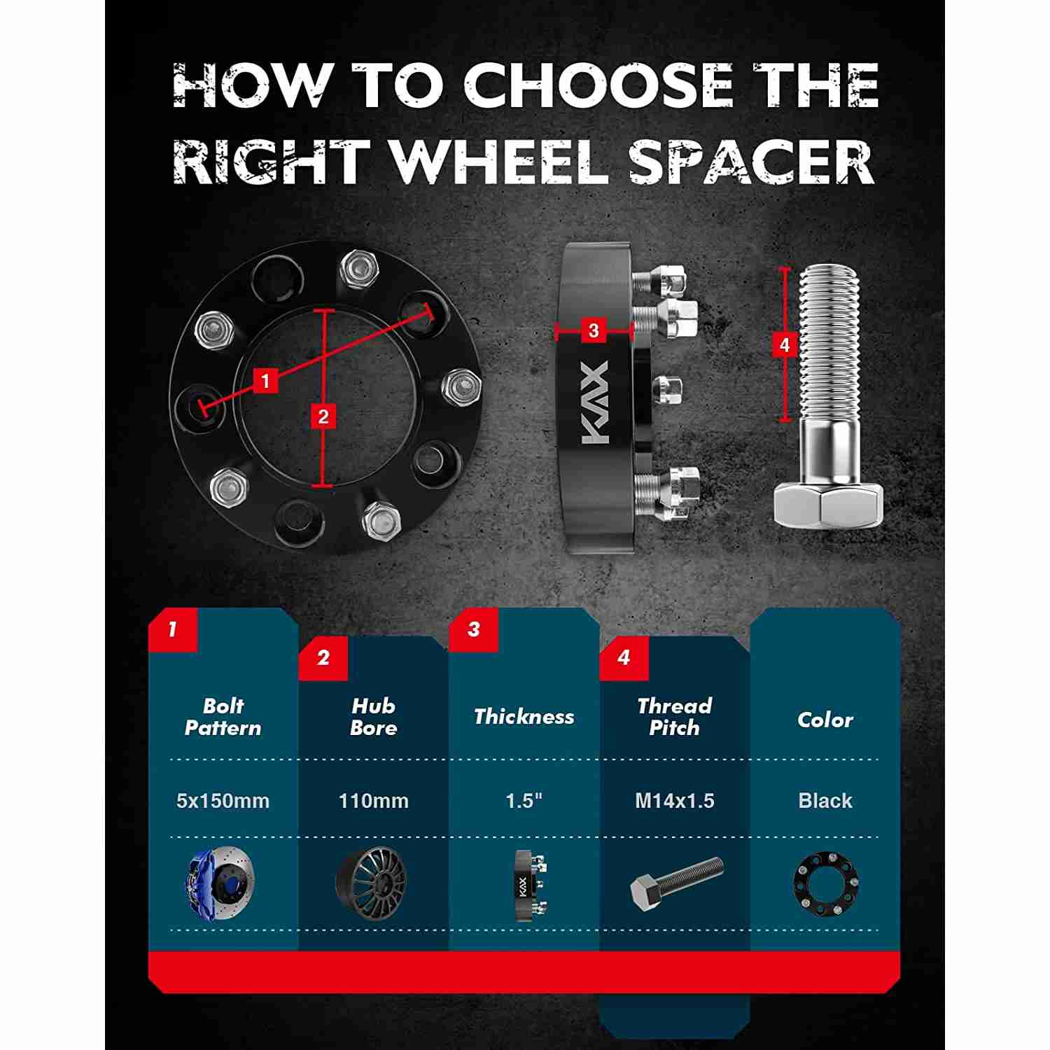 KAX® 5x150mm Wheel Spacers Hub Centric 1.5" 110mm M14X1.5 4Pcs