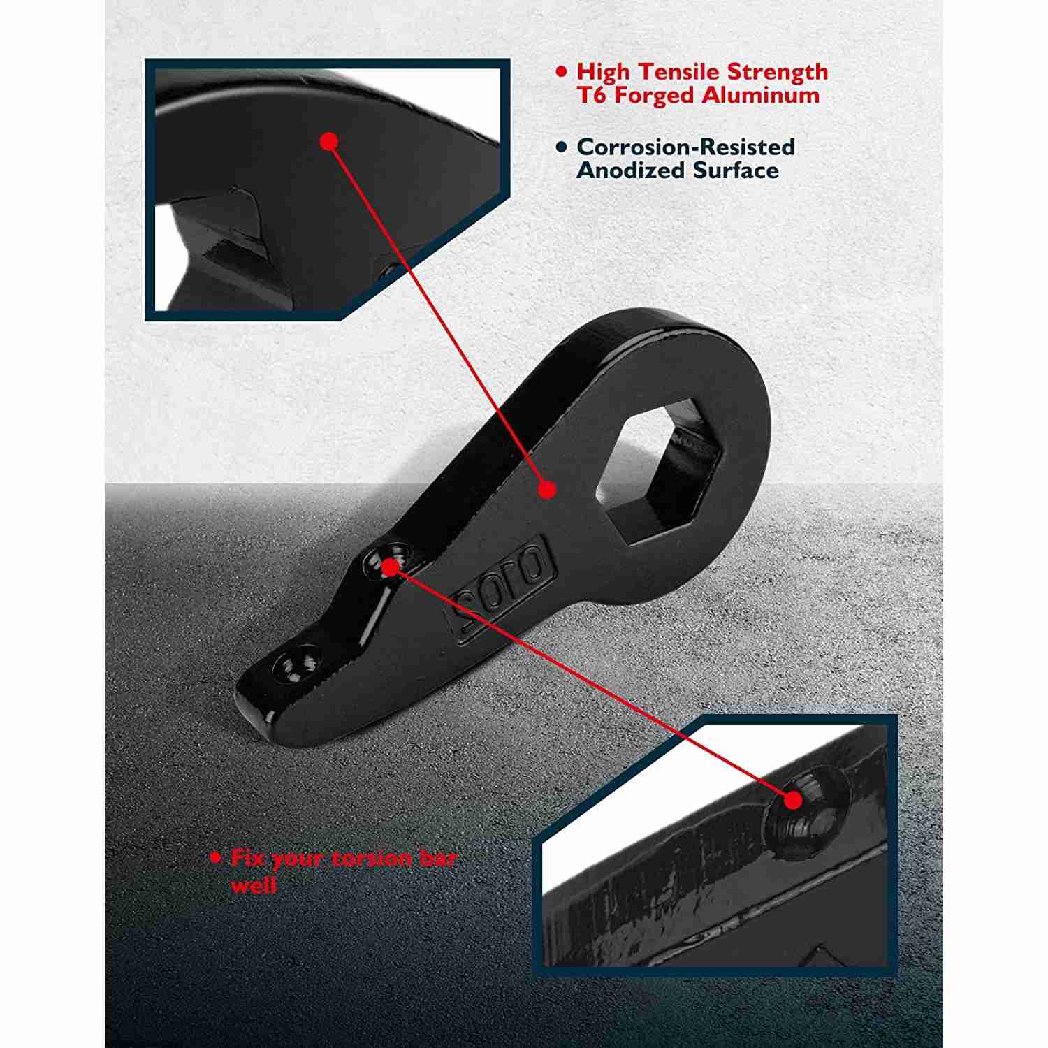 Leveling kit is made of the same material as the aircraft, CNC machined out of billet aluminum, T6 treated and 12.19 Grade premium bolts, powdercoated black. It can cope with Harsh Environments.