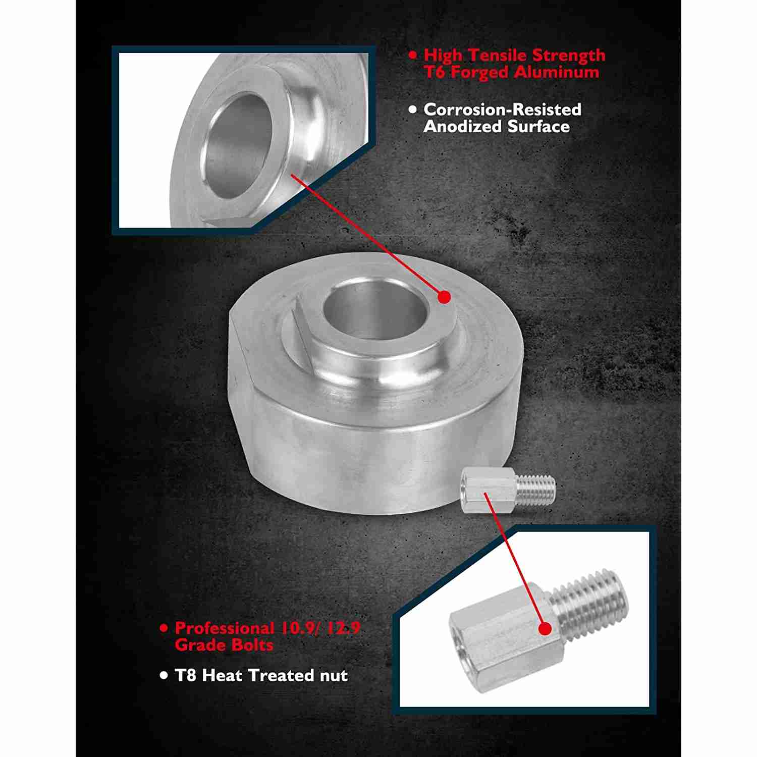 Leveling kit is made of the same material as the aircraft, CNC machined out of billet aluminum, T6 treated and 12.19 Grade premium bolts, powdercoated black. It can cope with Harsh Environments.