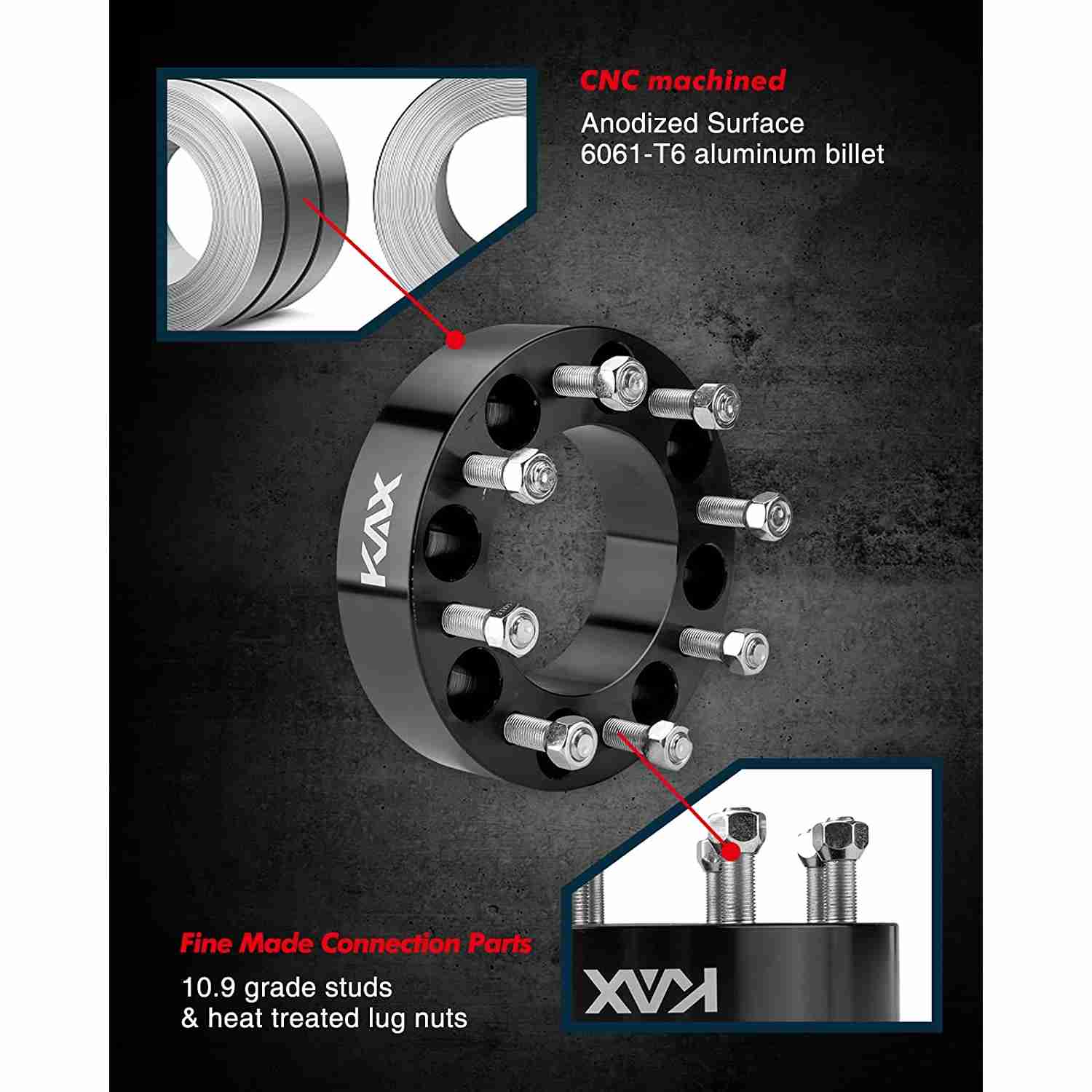 KAX Wheel Spacers are forged from anodized black 6061-T6 Aluminum alloy, making them more durable and corrosion resistant.