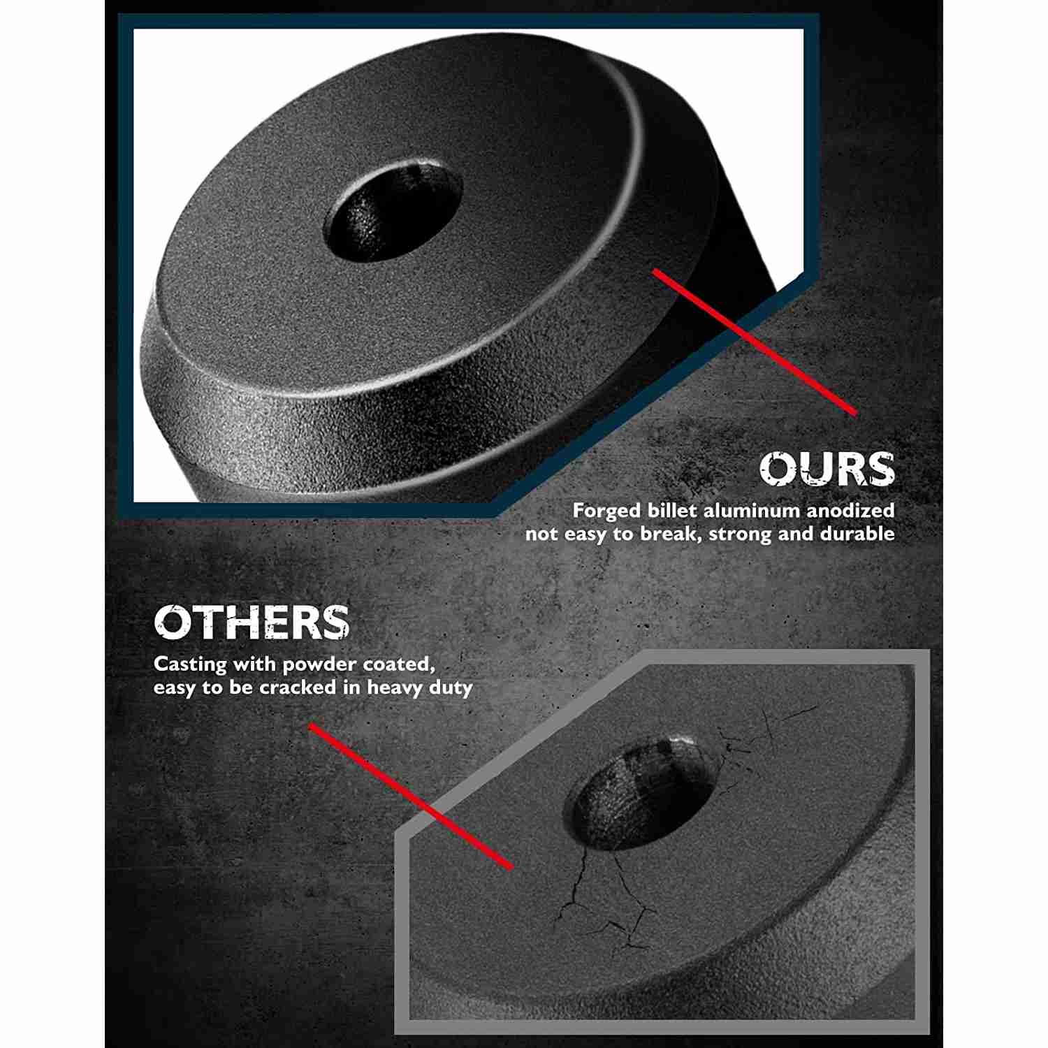 Leveling kit is made of the same material as the aircraft, CNC machined out of billet aluminum, T6 treated and 12.19 Grade premium bolts, powdercoated black. It can cope with Harsh Environments.