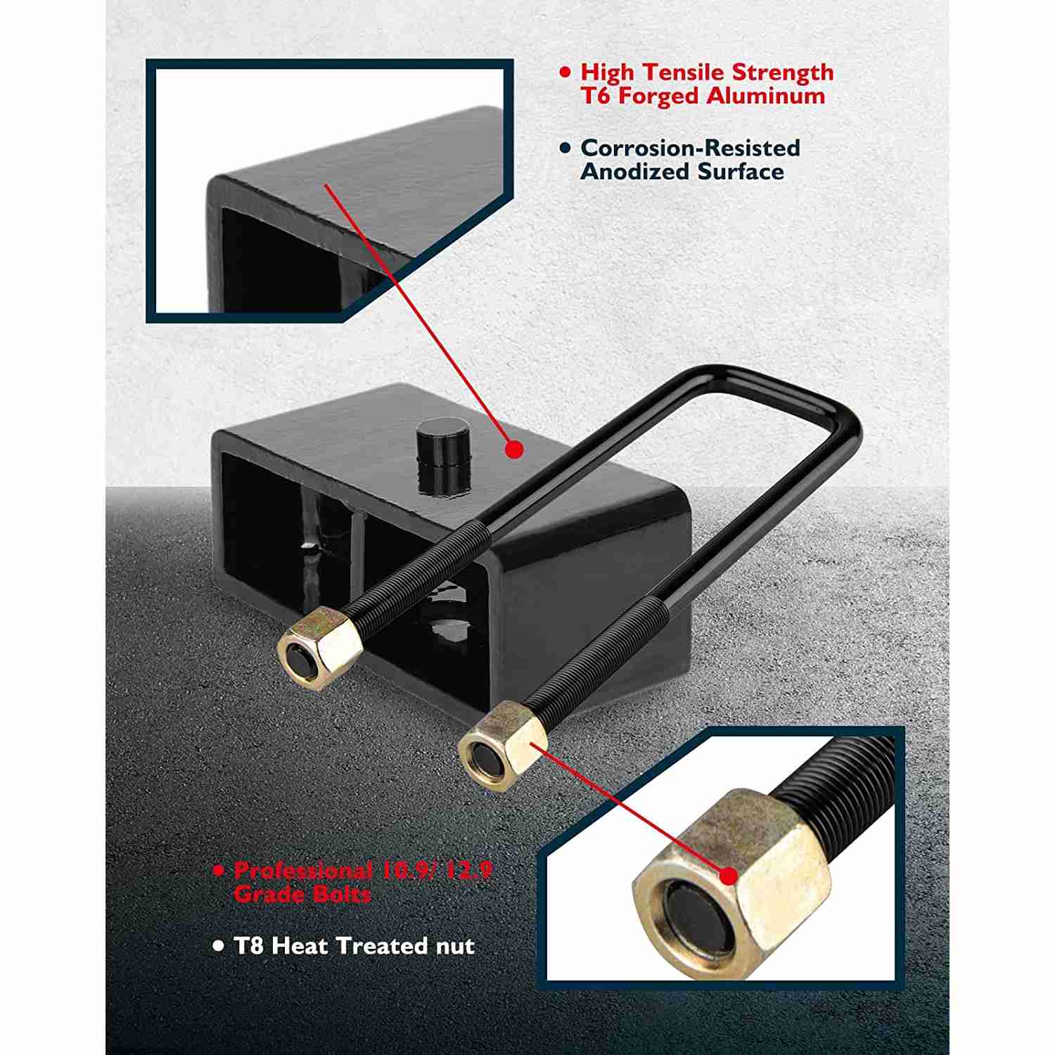 Leveling kit is made of the same material as the aircraft, CNC machined out of billet aluminum, T6 treated and 12.19 Grade premium bolts, powdercoated black. It can cope with Harsh Environments.