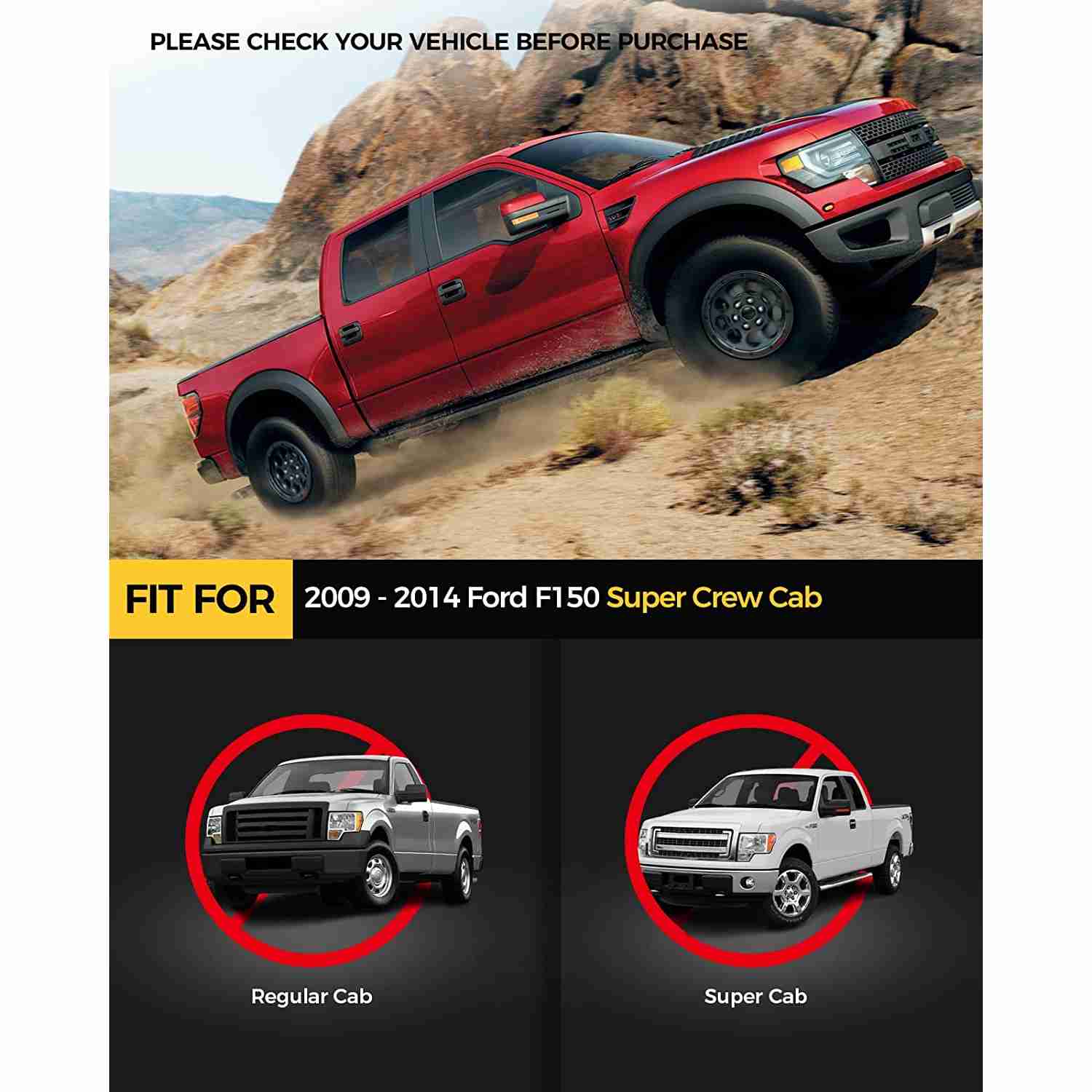 Compatible with 2009- 2014 Ford F-150 Super Crew Cab Classic and Dress up your vehicle (Please check the cab size before purchase)