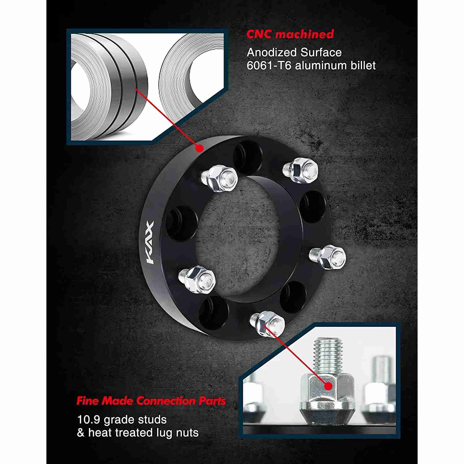 KAX Wheel Spacers are forged from anodized black 6061-T6 Aluminum alloy, making them more durable and corrosion resistant.