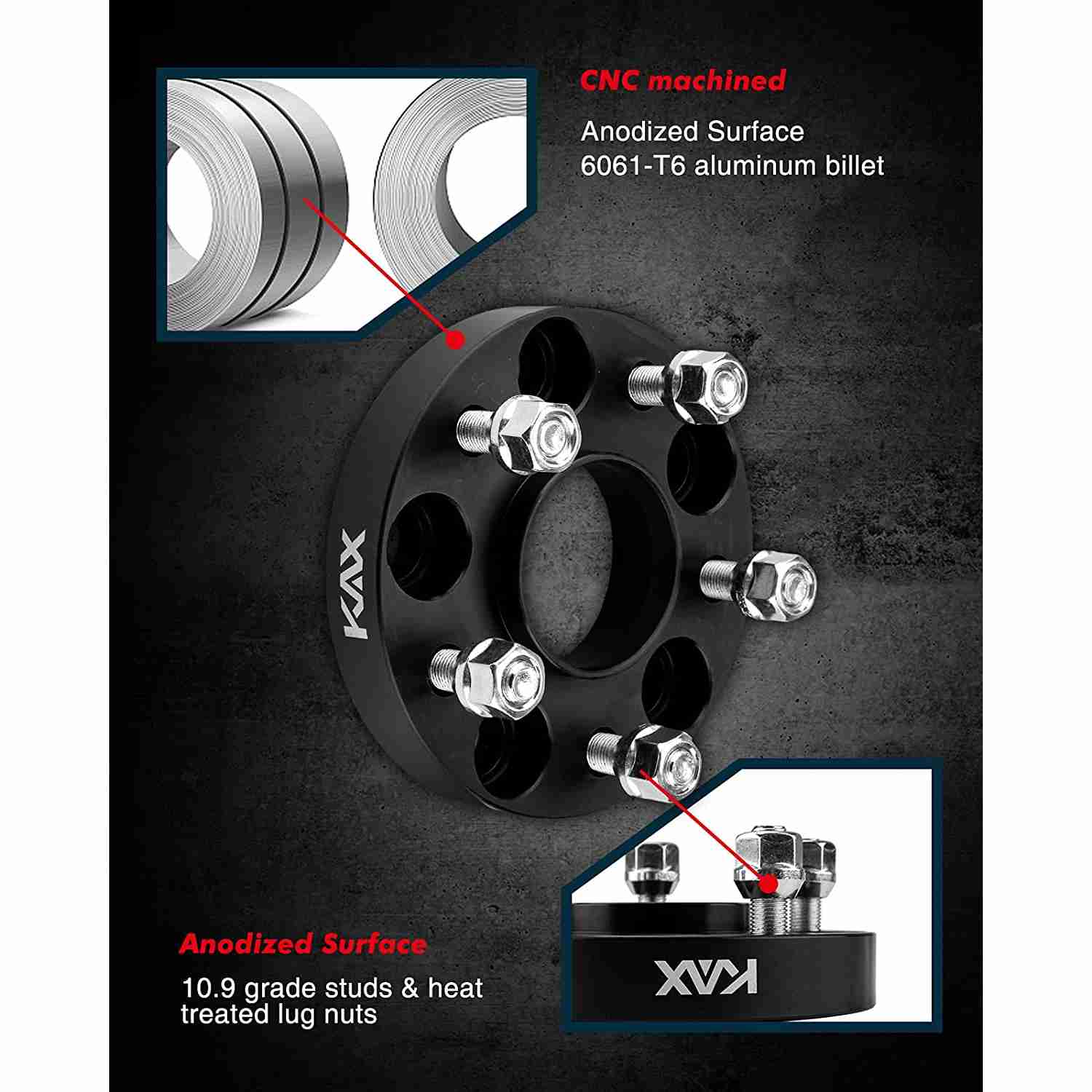 KAX Wheel Spacers are forged from anodized black 6061-T6 Aluminum alloy, making them more durable and corrosion resistant.