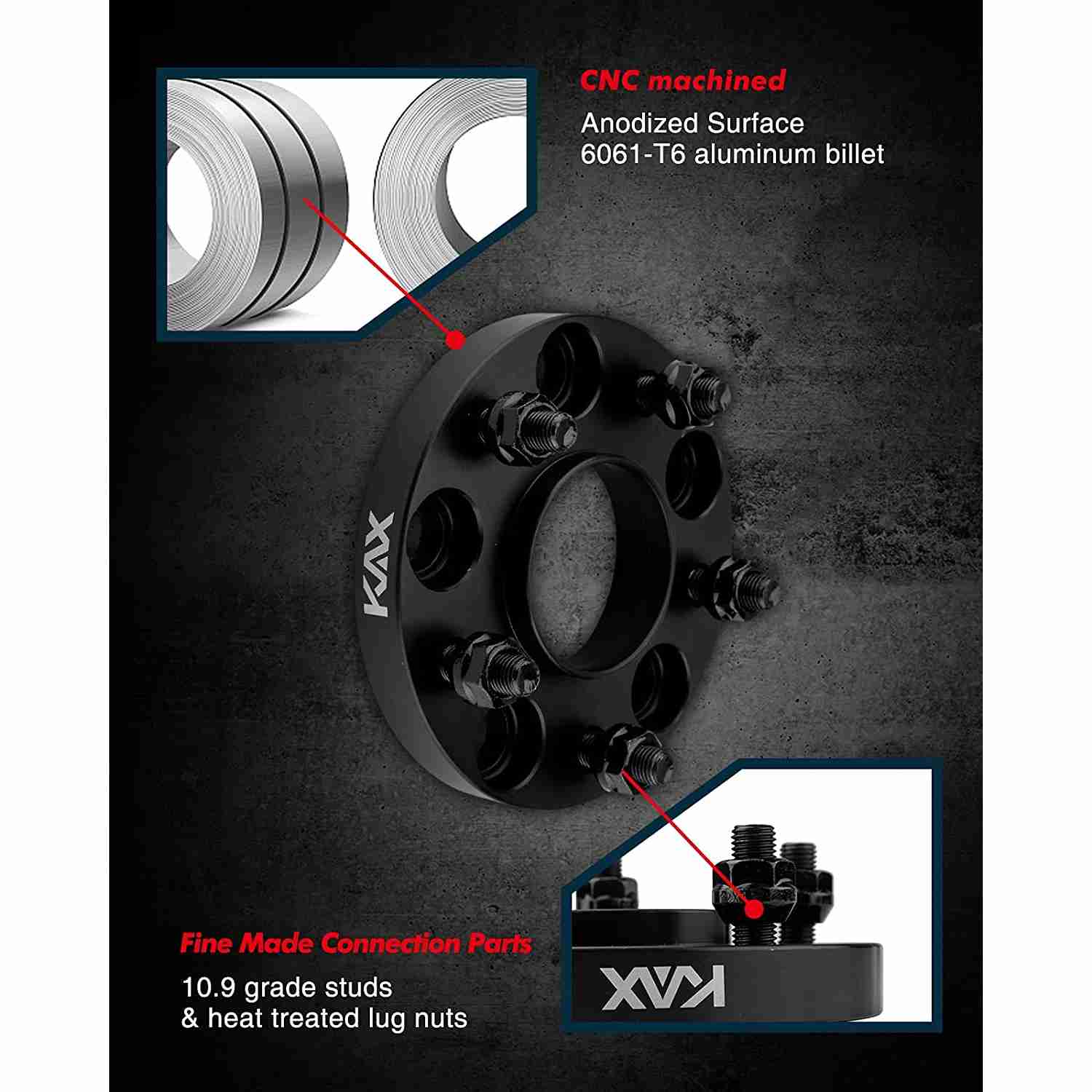 KAX Wheel Spacers are forged from anodized black 6061-T6 Aluminum alloy, making them more durable and corrosion resistant.