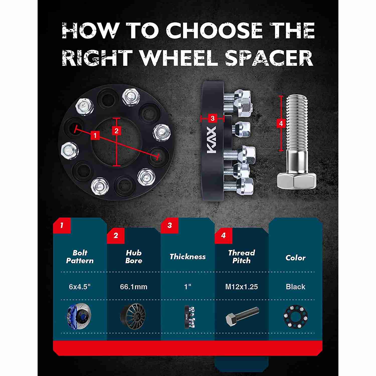 KAX® 6x4.5" Wheel Spacers Hub Centric 1" 66.1mm M12x1.25 4Pcs