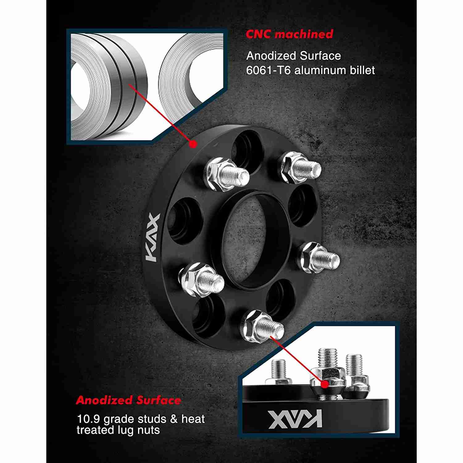 KAX Wheel Spacers are forged from anodized black 6061-T6 Aluminum alloy, making them more durable and corrosion resistant.