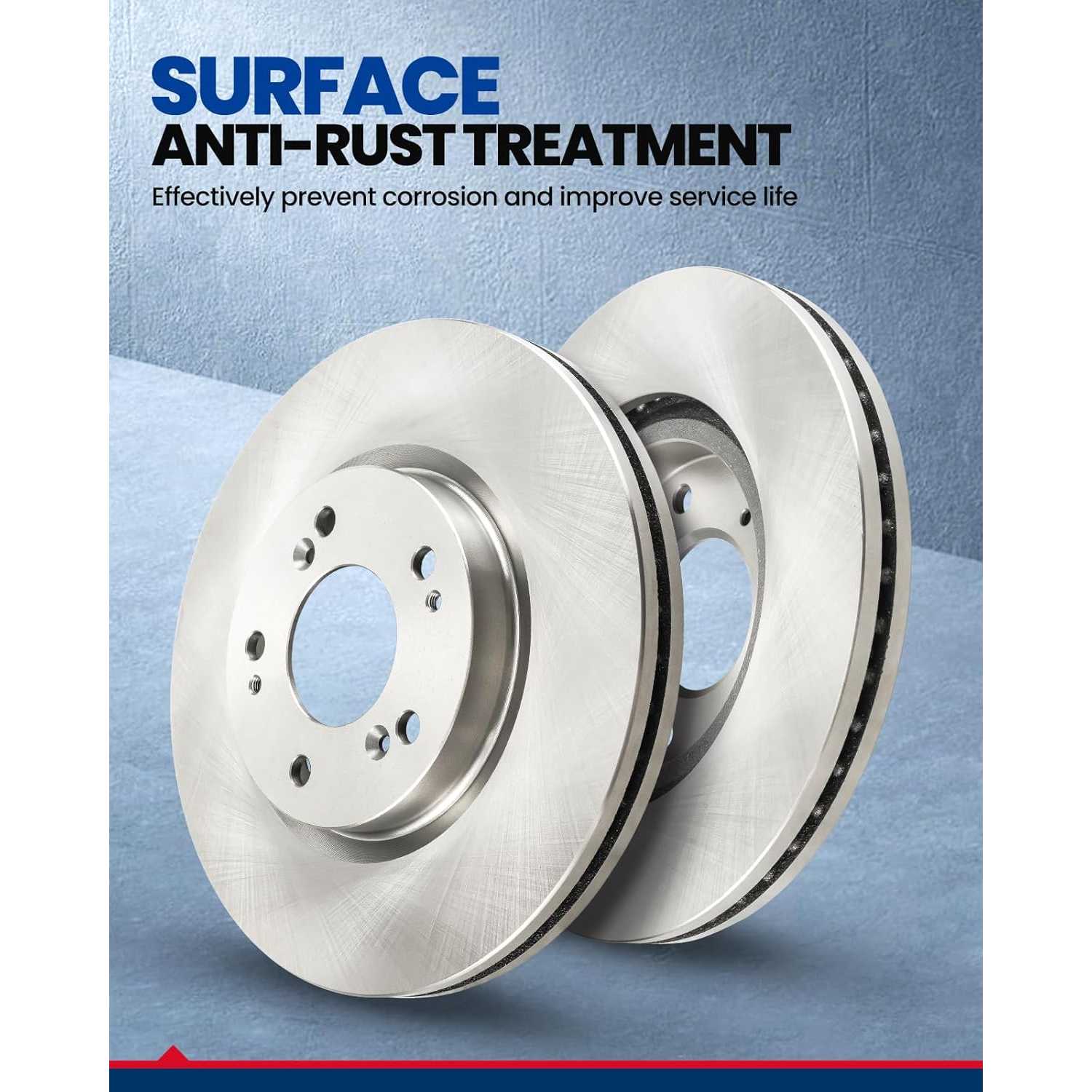 • (Low-Dust & Low-Noise) Ceramic brake pads are quieter than metal and last twice as long. The unique formula reduces dust by 30%, while the silver-zinc dichromate coating of the brake discs helps prevent rust and corrosion, keeping the wheels looking like new even after long drives.