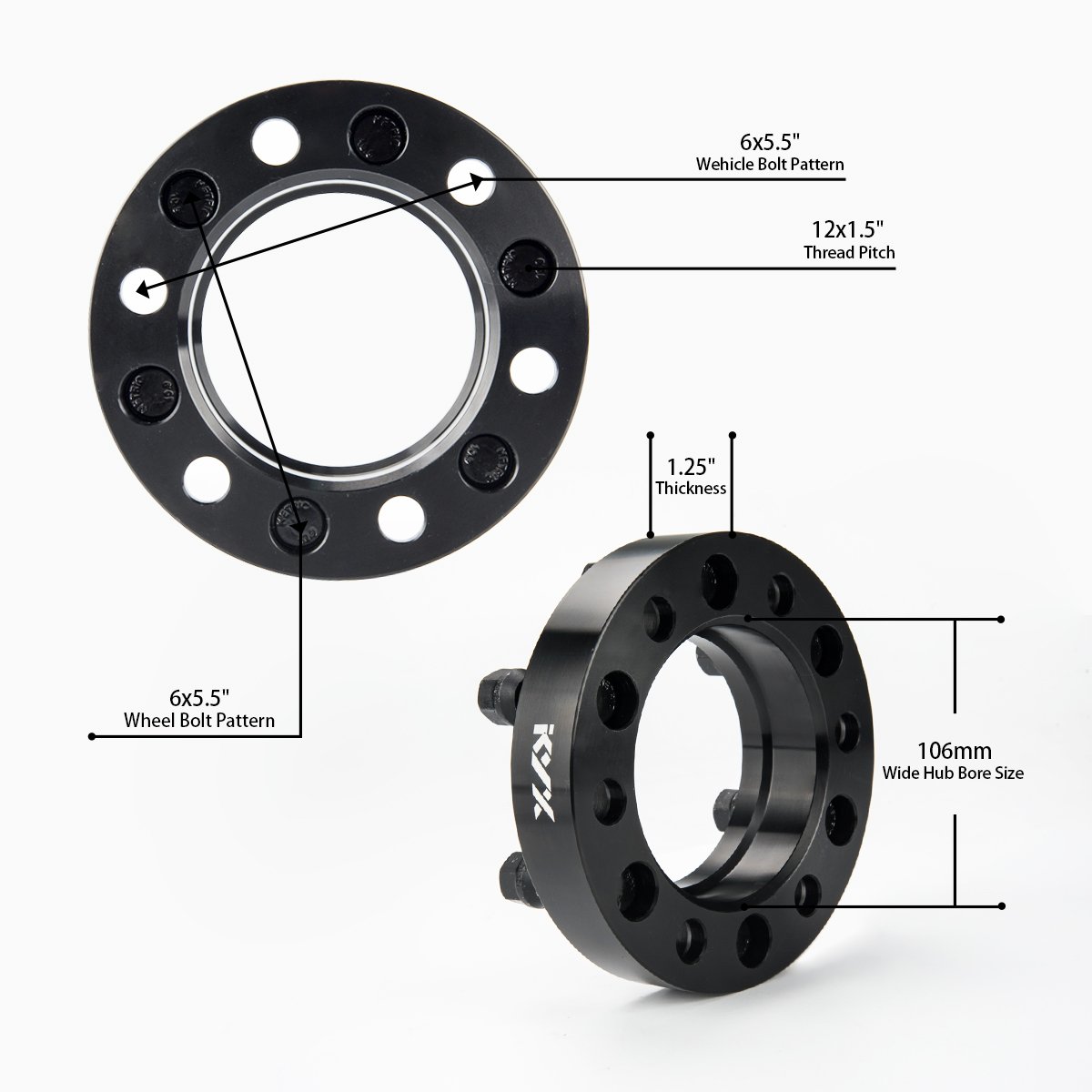KYX® 6x5.5" Wheel Spacers Hub Centric 1.25" 106mm M12x1.5 4Pcs