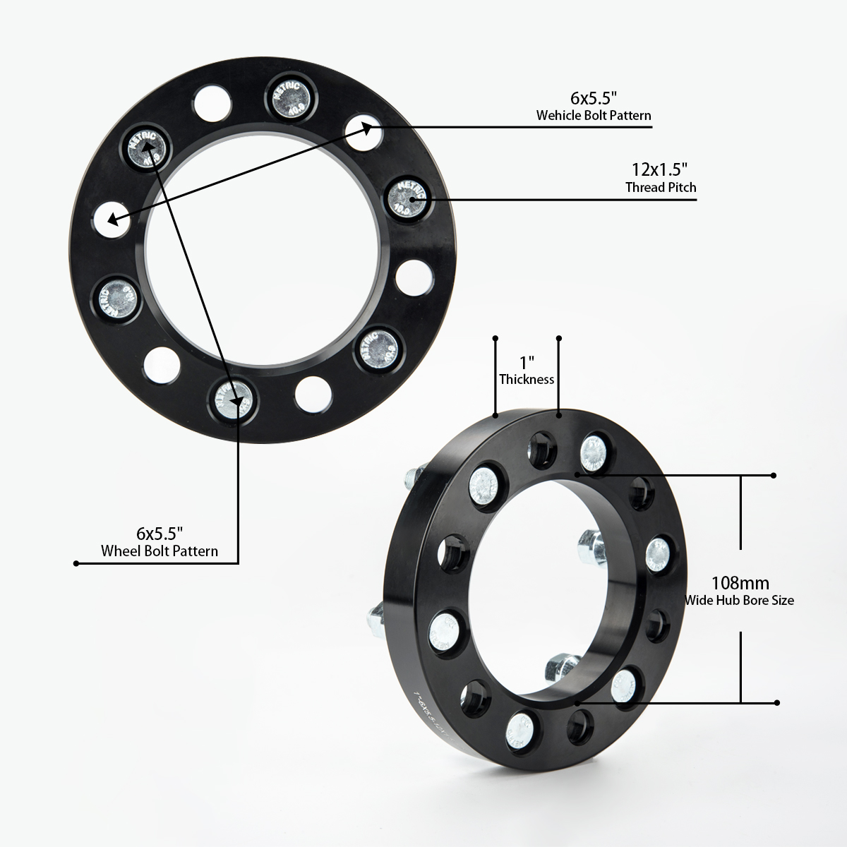 KAX® 6x5.5" Wheel Spacers 1" 108mm M14X1.5 4Pcs