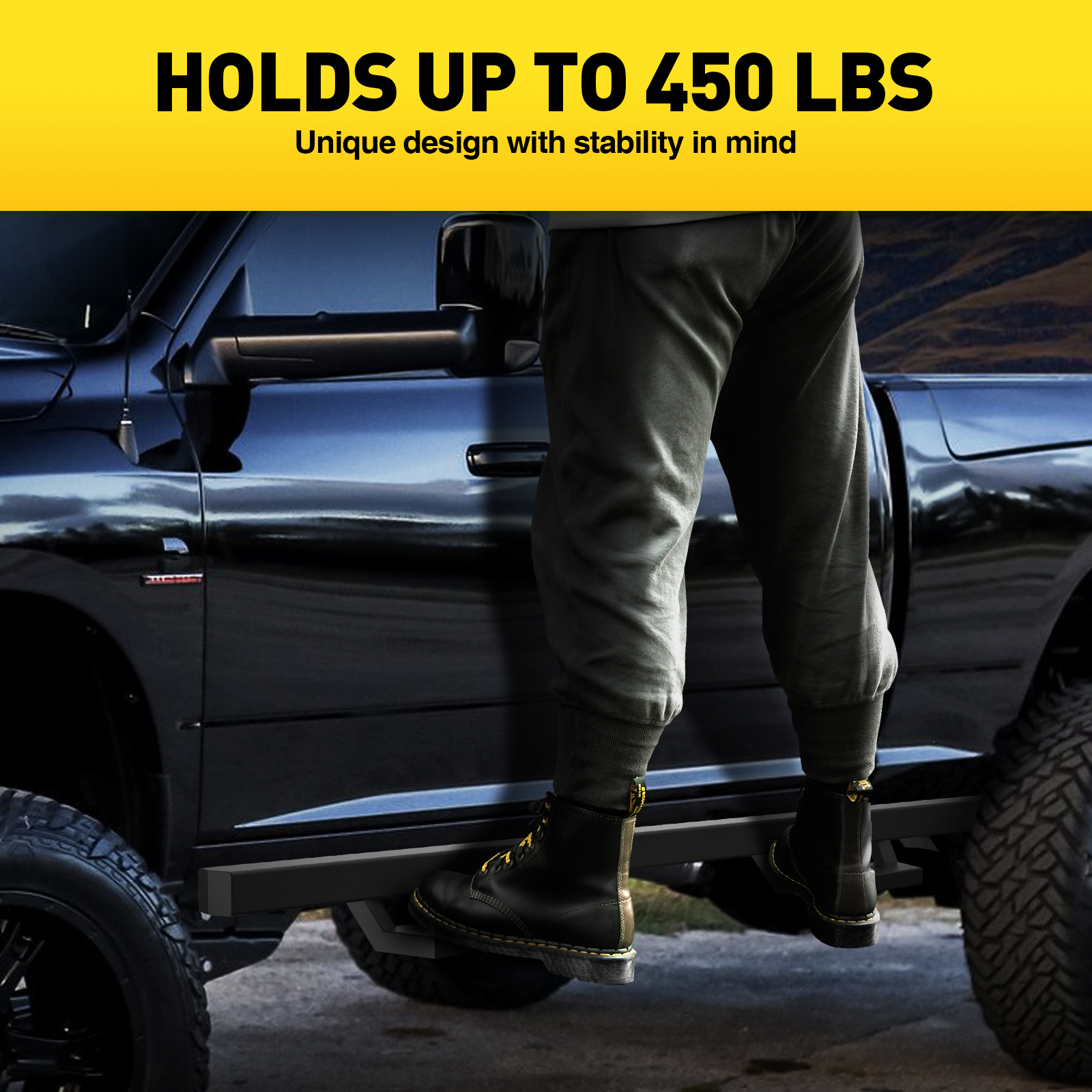 The KYX® 2007-2020 Toyota Tundra CrewMax side bars provides dramatically improved access to the cargo hauling areas of larger vehicles, such as pickup trucks, SUV, lorry vans and trailers.