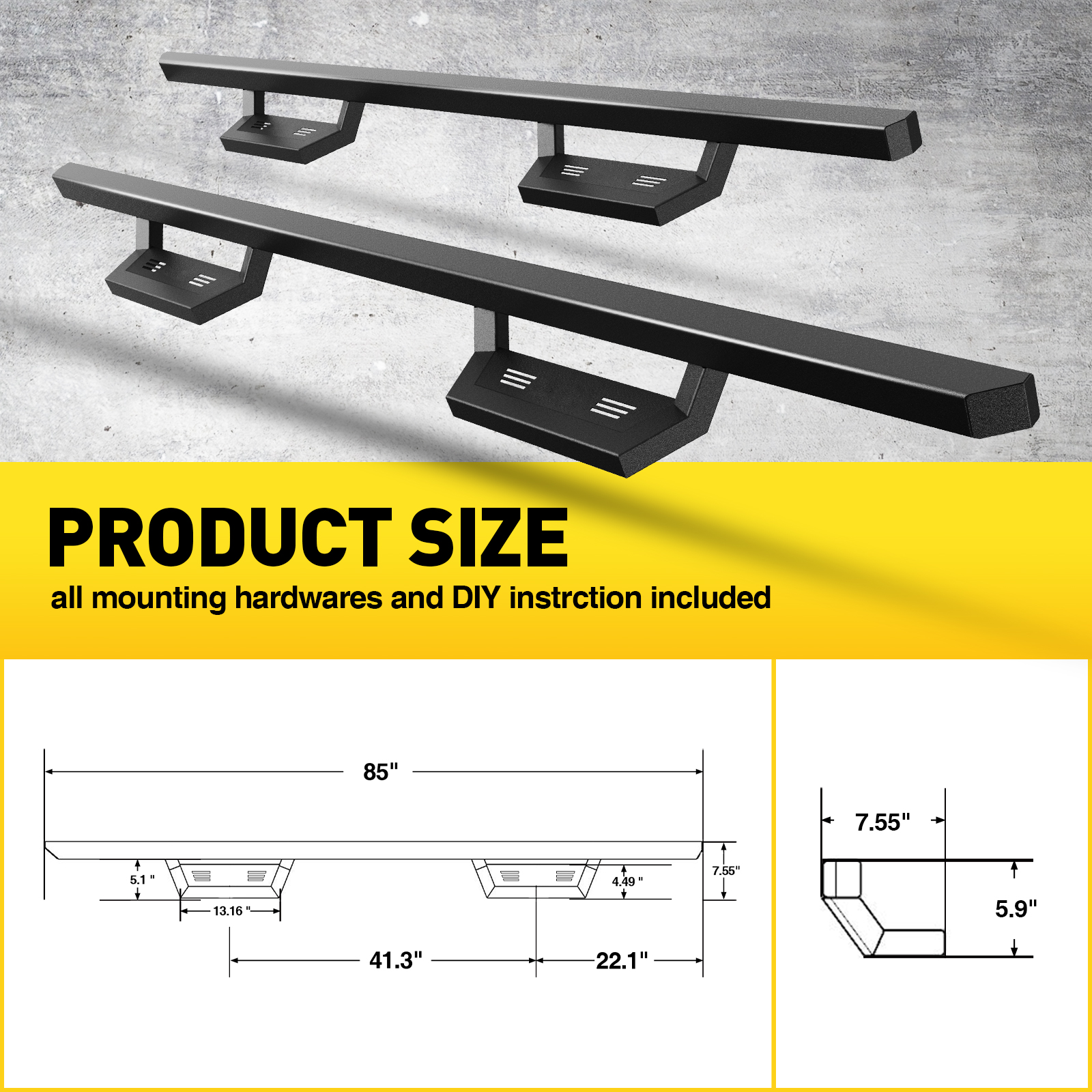 KYX® use the latest industry standards and manufacturing experience to provide you with the best step pad exterior accessories. The truck Step Bars constructed from Q235A Black high-grade steel, Anti-corrosion, provides maximum protection for vehicle from damaging impacts.