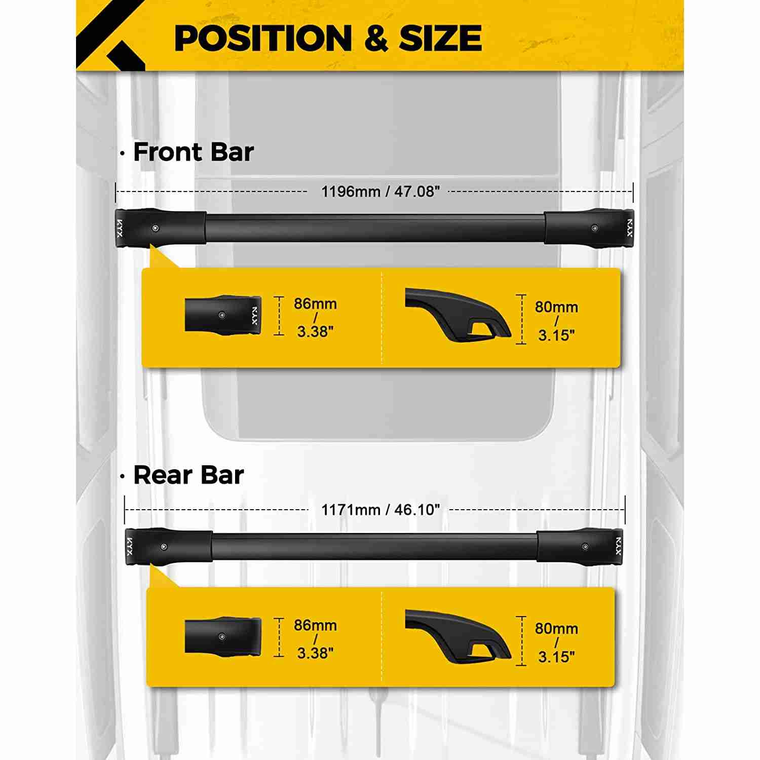 • Variety of Application: The KYX cross bars help you carry what you need for outdoor activities, such as bikes, roof bags, snowboards, kayaks, canoes, tents, and similar items