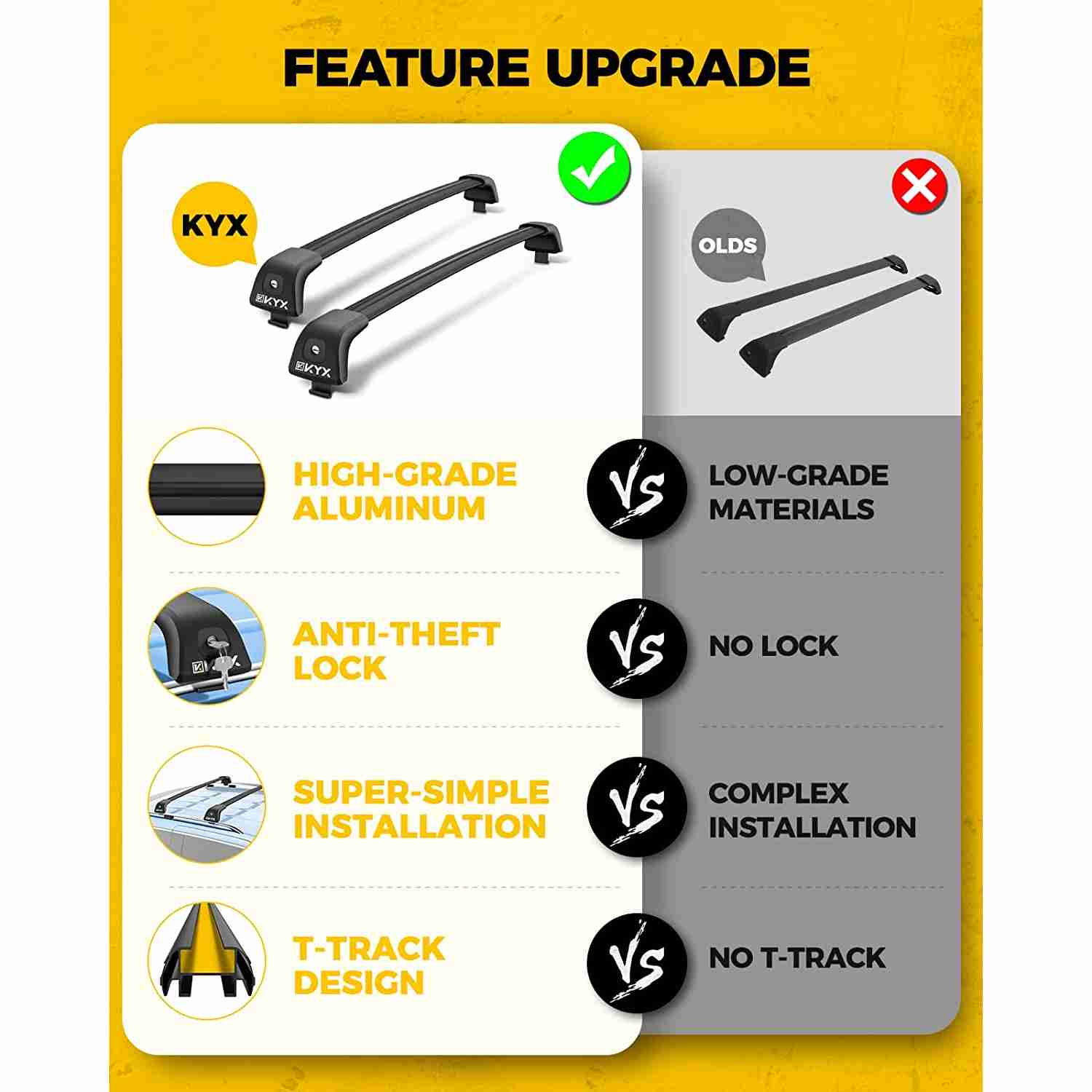 KYX® Roof Rack crossbars can help you carry what you need for outdoor activities such as bikes, roof bags, skis, kayaks, canoes, tents, and similar items.