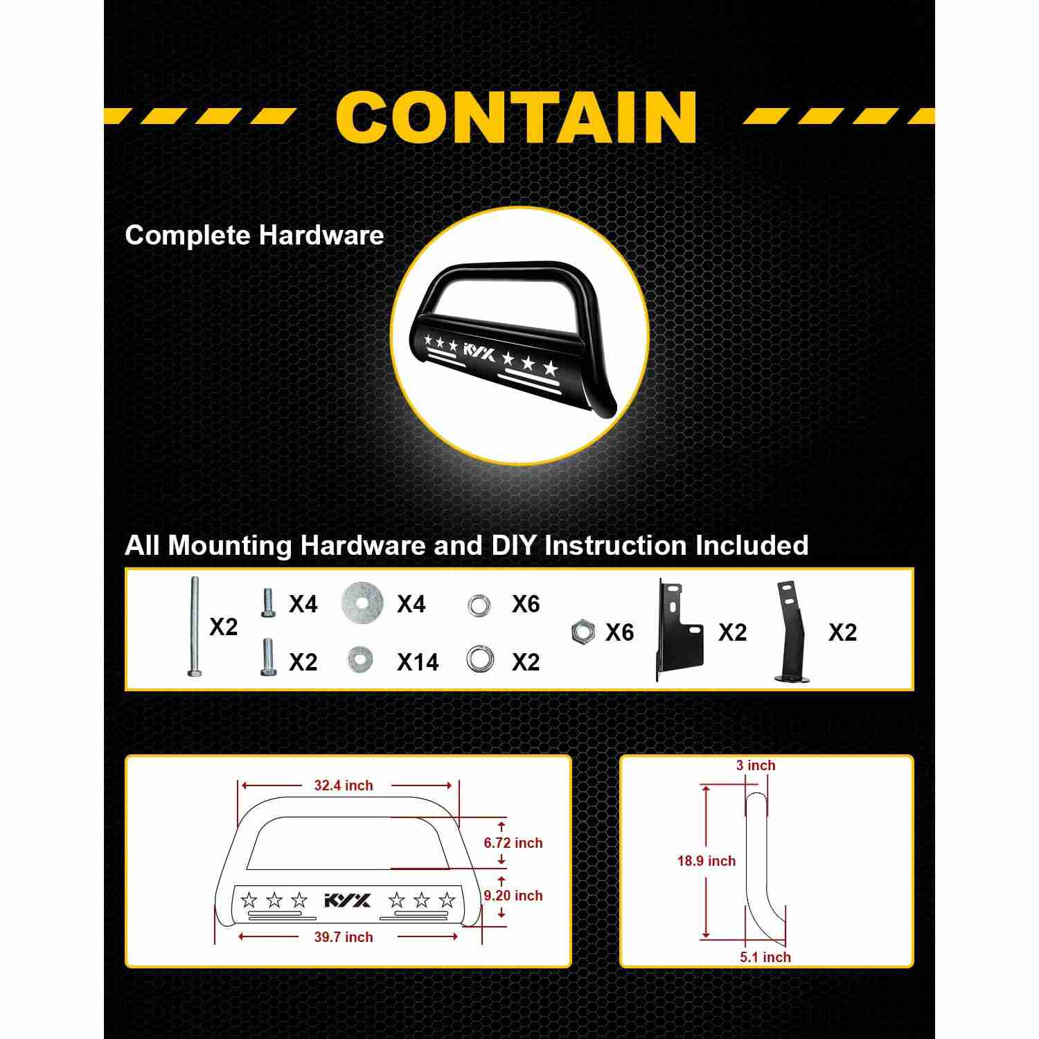 • 24-HR SUPPORT: The KYX 3” bull bar is guaranteed against all defects and our support team is standing by 24/7 to assist you if you need help
