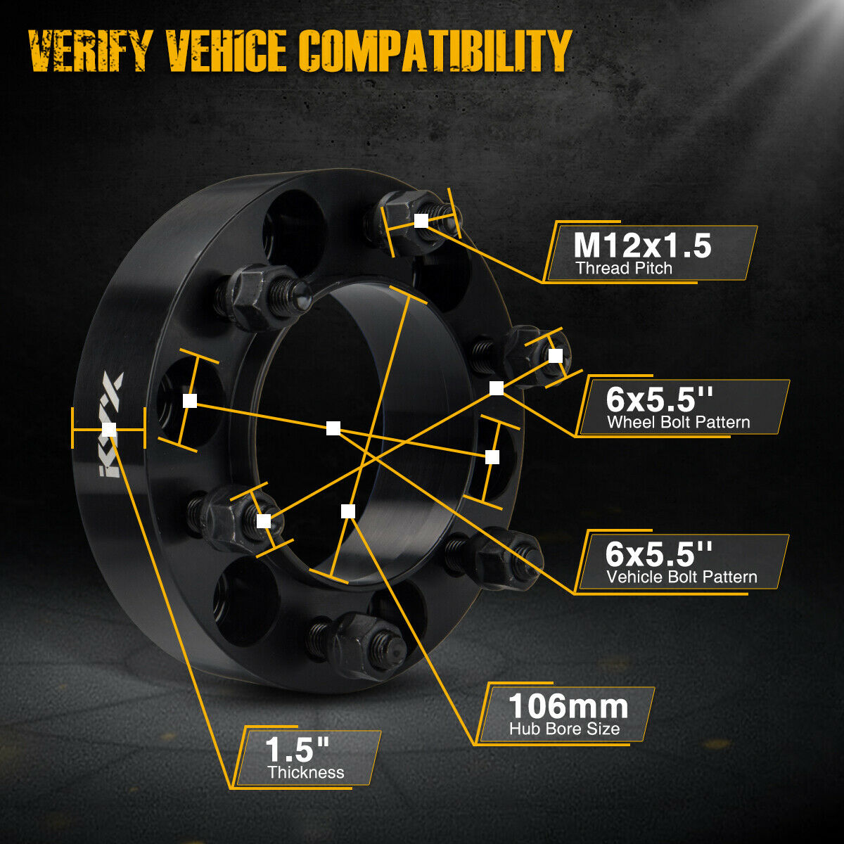 KYX® 6x5.5" Wheel Spacers Hub Centric 1.5" 106mm M12x1.5 4Pcs