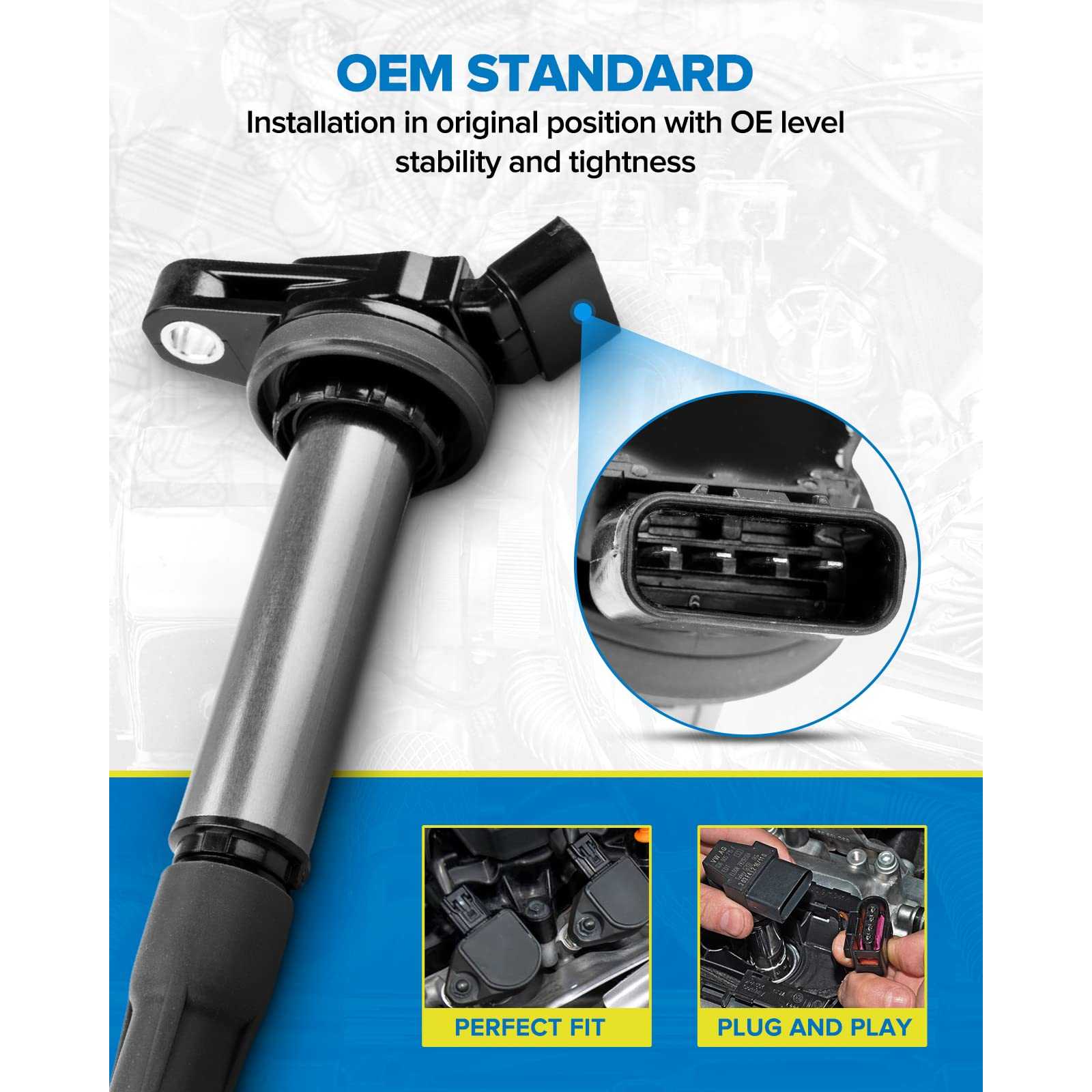 • Directly Fit - OE design ensures fast and easy installation with a perfect fit, including an ignition coil pack set of 4. Please enter your vehicle information in the top left corner to confirm you get the correct coil