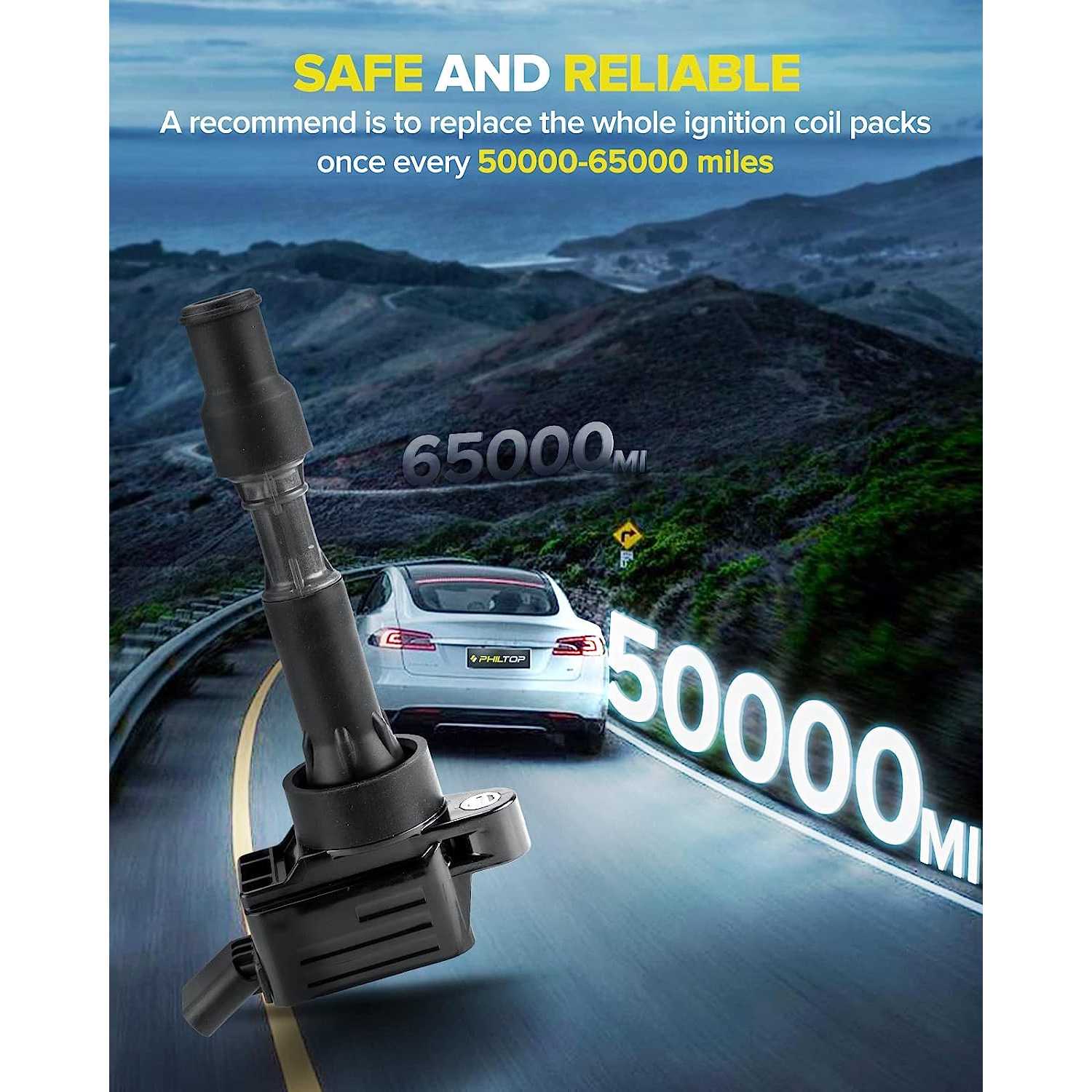 • [What You Get] Fast ignition within 0.1-0.2 seconds | 140°C high temperature and corrosion resistance | RF Interference Protection | 6500Mi Longer lifespan | High voltage output | Smoothly Engine runs. Automotive replacement ignition coils in time can protect spark plugs and engine from damage.
