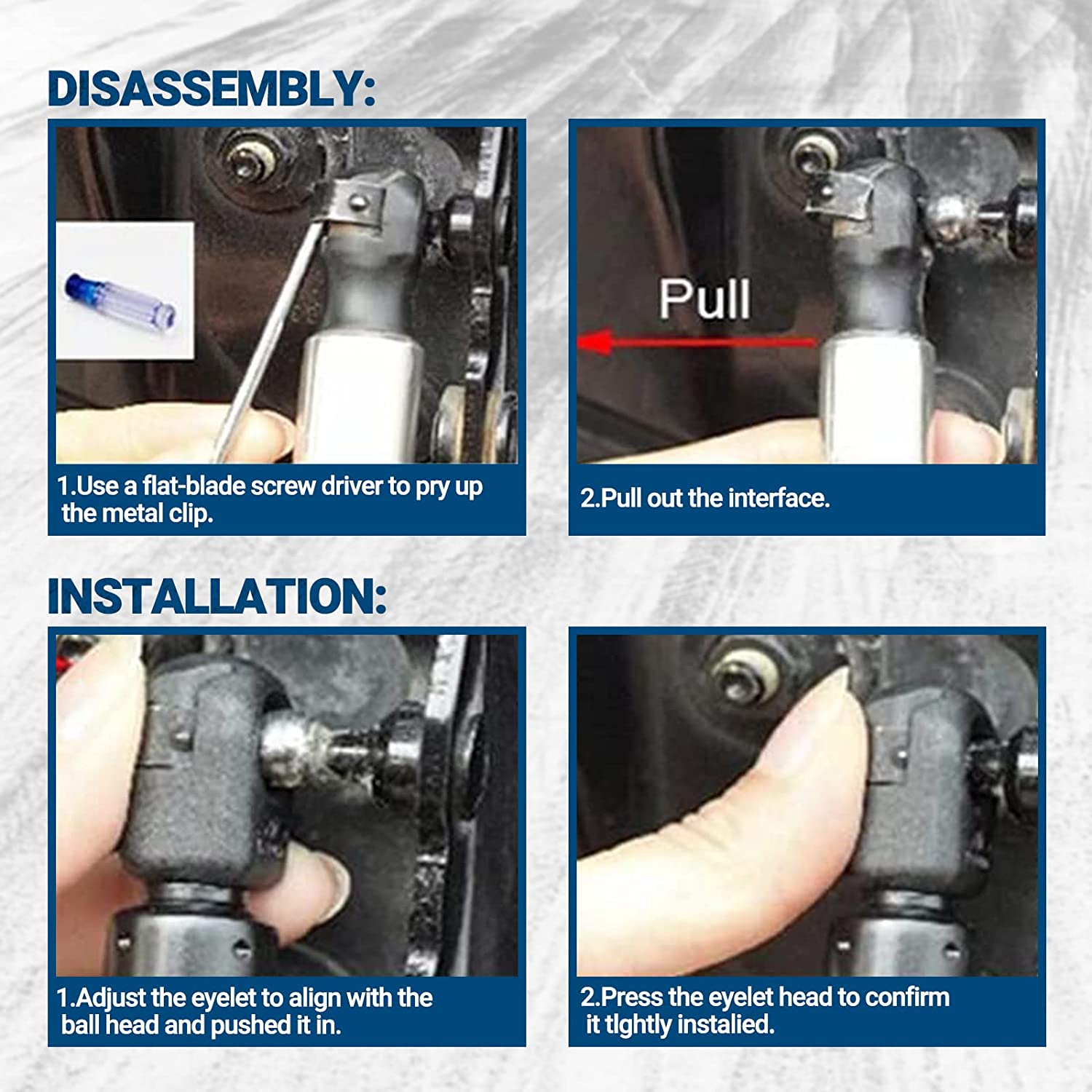 • Hassle-Free Installation: The lift support includes all the components required for a single strut replacement. No need to master professional installation skills and no Spring Compressor is required, you can install it easily and quickly.